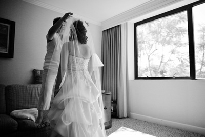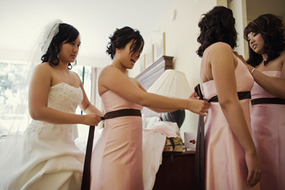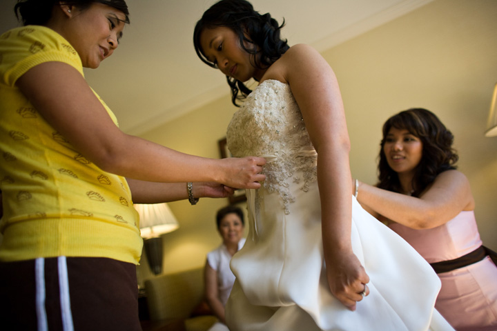 Each of the girls helped me put on a piece of my bridal attire — Ruby put on my earrings, Carmen helped me step into my Manolos, etc. And the last piece was my veil, which my aunt pinned on. I held it together until this point but I lost it when I looked up at her, someone I’ve always considered to be like a second mom.