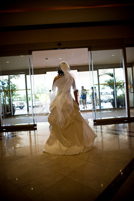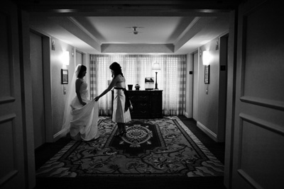 I totally over-estimated the time it would take for hair and makeup because all the girls were finished by noon, which was way ahead of schedule. Funny story – around this time, my aunt and cousin (aka super Maid of Honor) ordered room service so we could all have some lunch before we had to head over to the ceremony site at 3pm. We ordered finger foods like popcorn shrimp and chicken nuggets that would be easy for us to eat and not mess up our makeup. Well, room service brought us buffalo wings instead. Yup. Probably the messiest thing they could have brought. We did eventually get the correct order.