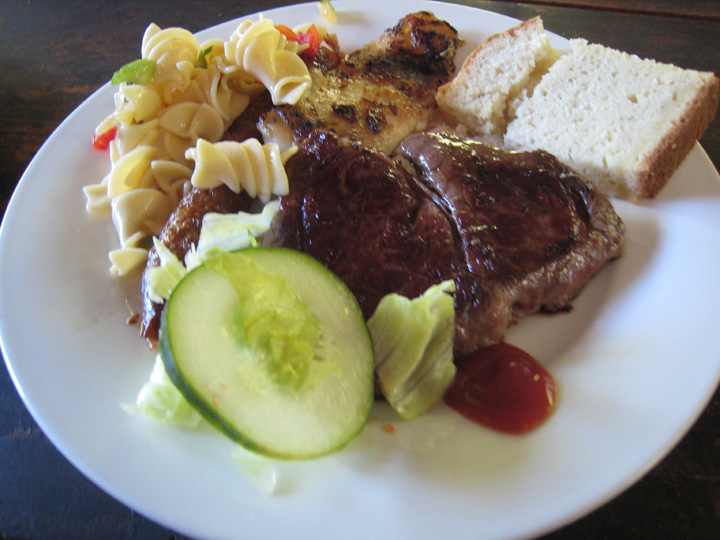 And the food didn’t disappoint. Tony’s has an outdoor grill set up and we had a fresh and YUMMY meal of steak, sausage, fish, salad and damper.