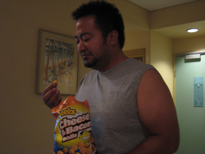 Rob made the mistake of choosing these Cheese and Bacon balls… sounds good in theory but TERRIBLE in execution. And so ends another Aussie day.