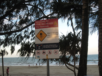 Throughout the day we saw green ants — I didn’t take a picture but they’re pretty large and have a big green bottom. The “juice” in their bottoms is supposed to be good for you. Aboriginals use it for medicinal purposes. You can get a taste of this juice by letting the ant crawl onto your hand and then touching the tip of its bottom to your tongue. This doesn’t kill them.