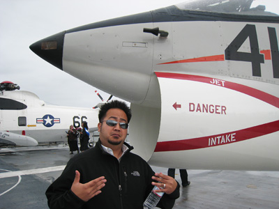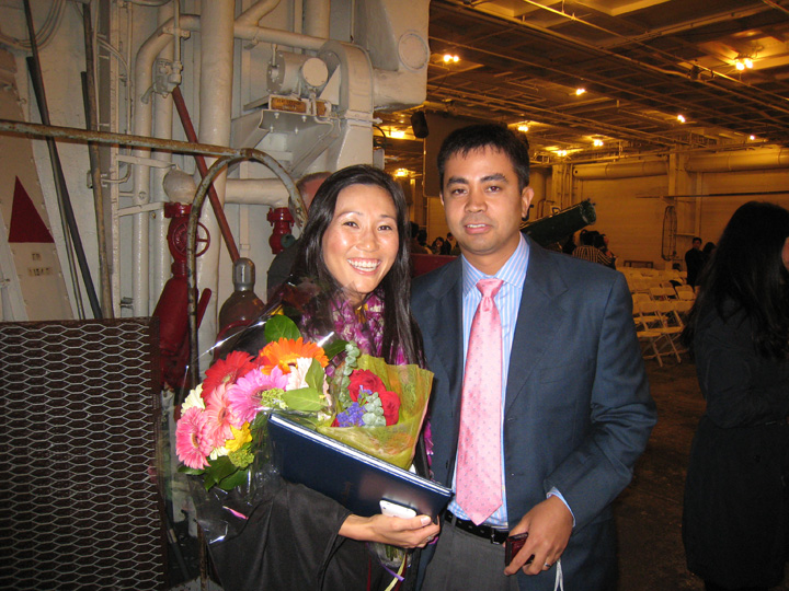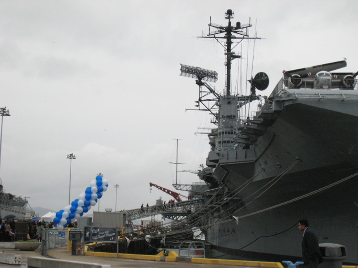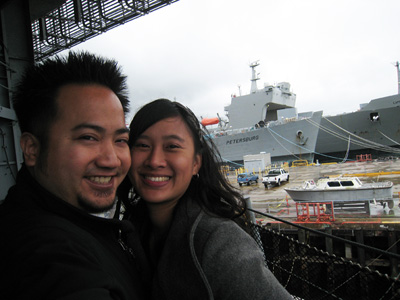 Saturday was Susie’s graduation on the USS Hornet. Yup, a ship! The ceremony started at 10am but since we were tagging along with the graduate, we had to be there at 8:30am. I think I woke up at about 6:30am to start getting ready, which is the earliest I’ve woken up in a loooong time now that I’m working from home. HEE. It was a good thing we had to be there early because there was already a long line waiting to get on the ship. I think they were doing security checks. You can see a tiny bit of the line on the left of this pic…