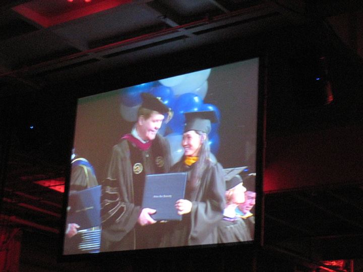 Finally, Susie was called and this is all we got to see of her! The stage was in the middle of the hangar deck (I think) with the graduates seated in front and all the guests seated to either side. Super awkward arrangement.